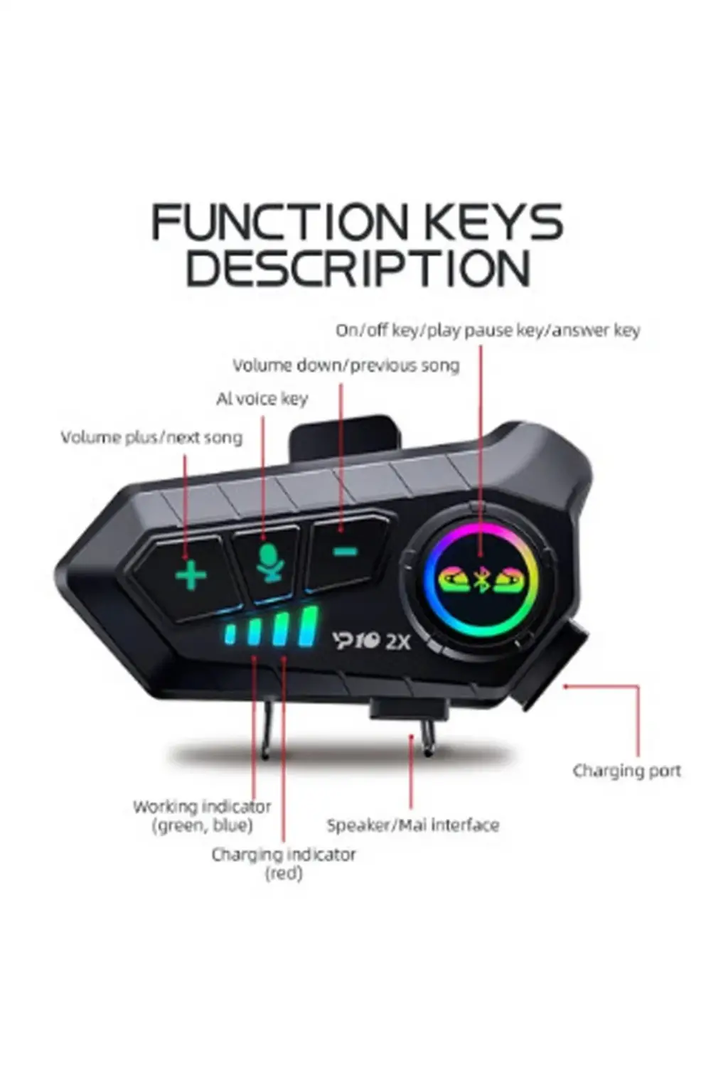 Y10 2X Motosiklet Kask İntercom Çift Eşleşme RGB Işıklı Bluetooth Kulaklık 5,3