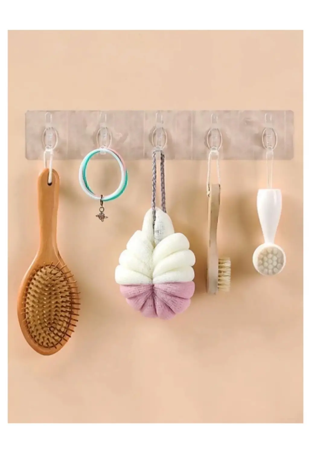2 Adet Kendinden Yapışkanlı Güçlü Şeffaf 5li Askılık - Kapı Arkası Mutfak Duvar Banyo
