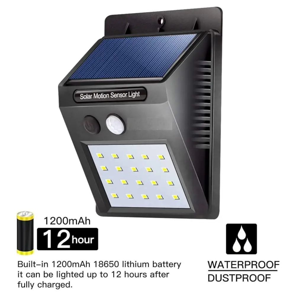 20 Ledli Hareket Sensörlü Dış Mekan Solar Lamba