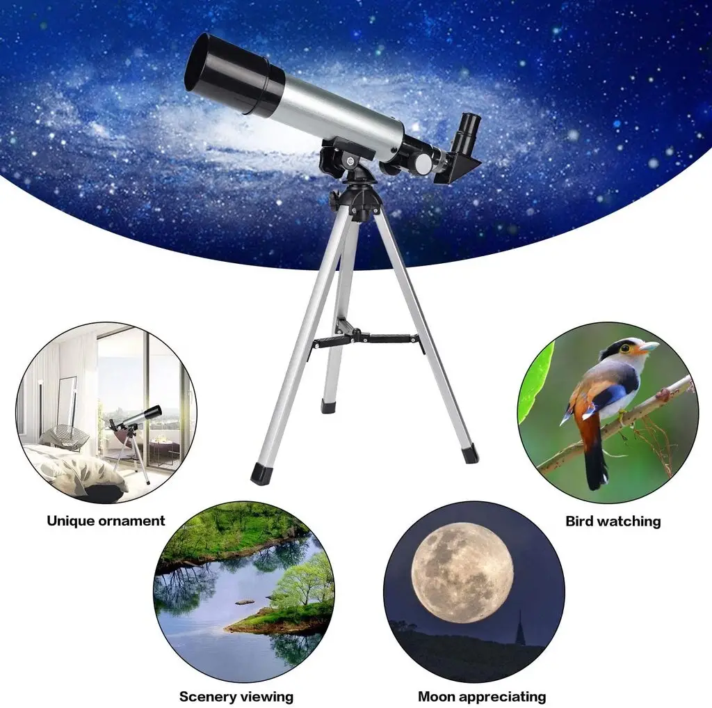 50x360 Mini Teleskop Kara Uzay Teleskobu Aliminyum Gövde Tripodlu