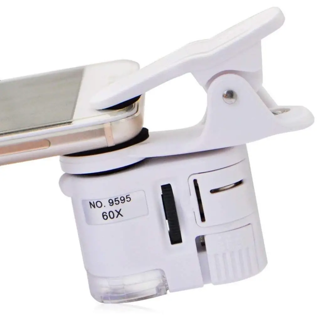 Cep Telefonları için özel  bir mikroskop Mandalı ile Kamera lensine kolayca bağlanabilir.