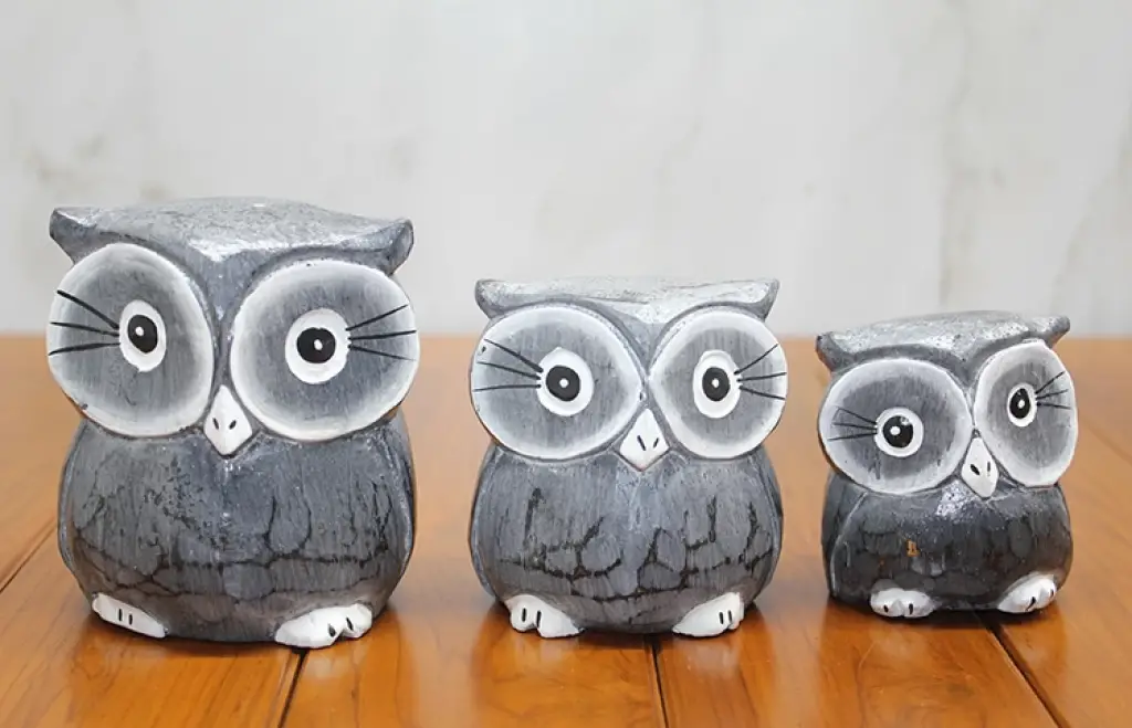 Ahşap 3'Lü Baykuş Seti Polos:2 Ürün Ölçüleri 7-8-10 Cm