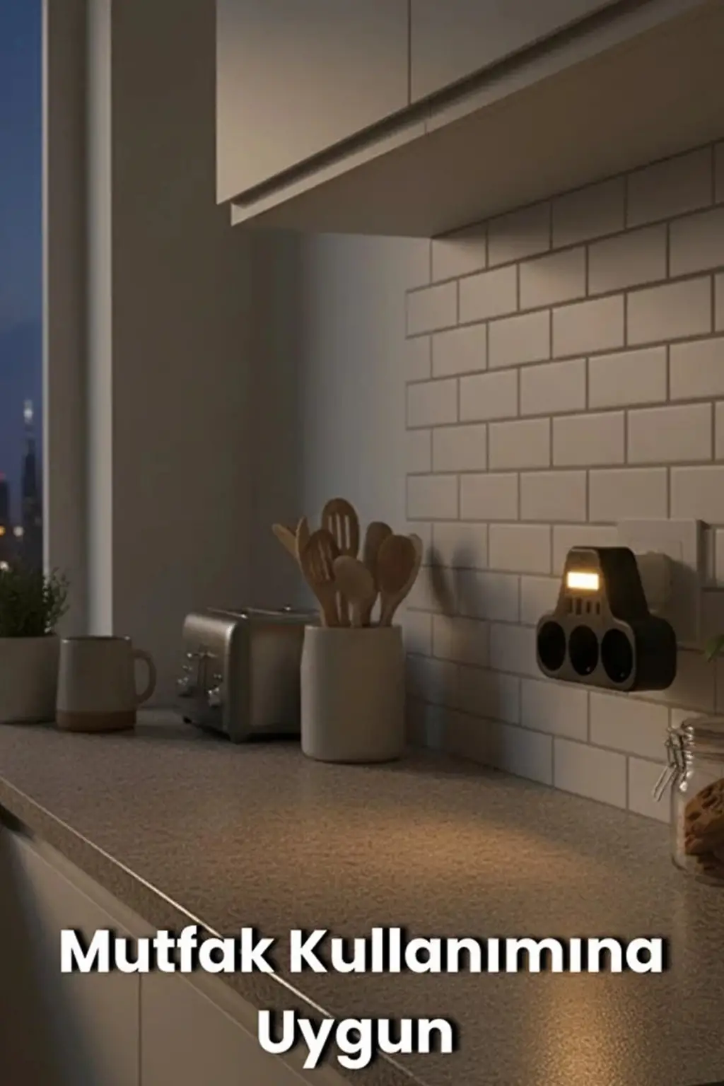Akım Korumalı Priz Gece Lambalı 3’lü Priz 2xusb 2xtype-c Çıkışlı Grup Priz Çoğaltıcı