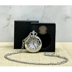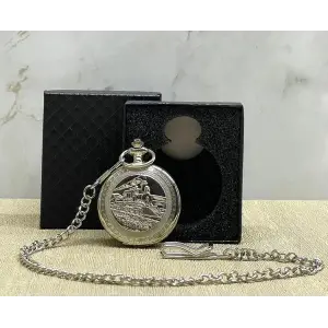 Özel Kutulu Tren Temali Gümüş Köstekli Saat Alk4675
