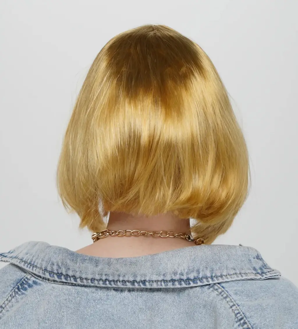 Altın Renk Düz Kesim Küt Parti Peruğu: Cesur ve Göz Alıcı Bir Görünüm İçin