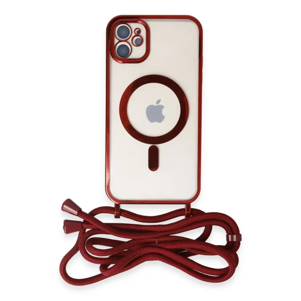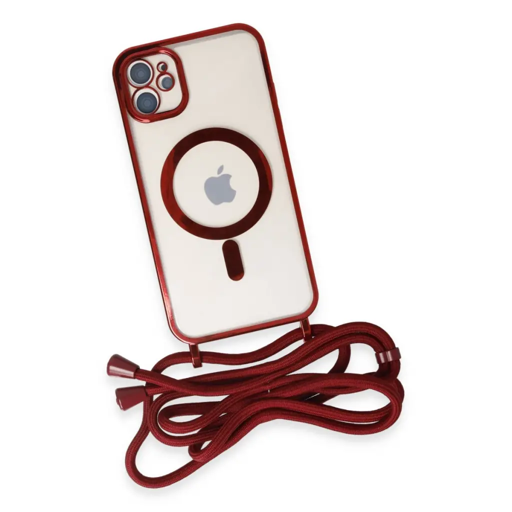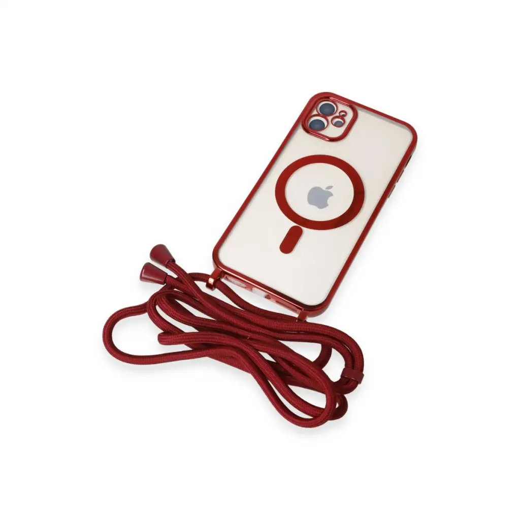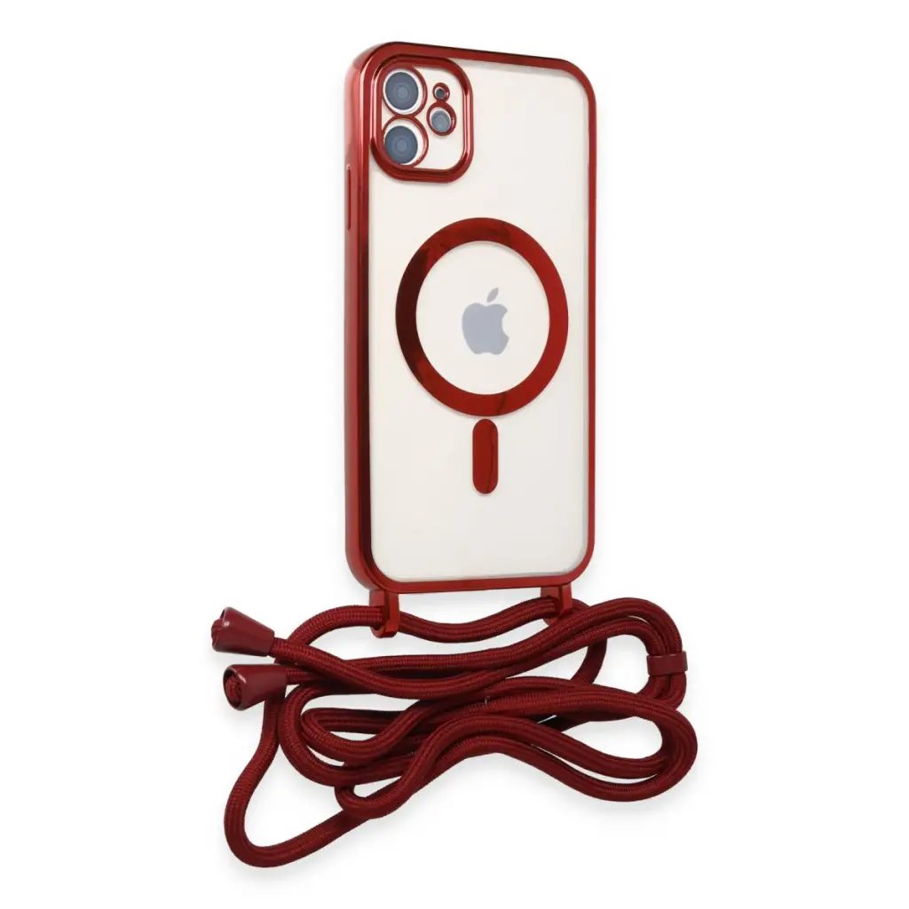 Apple İphone 11 Kılıf Divo Lazer Askılı Magsafe Kapak - Kırmızı