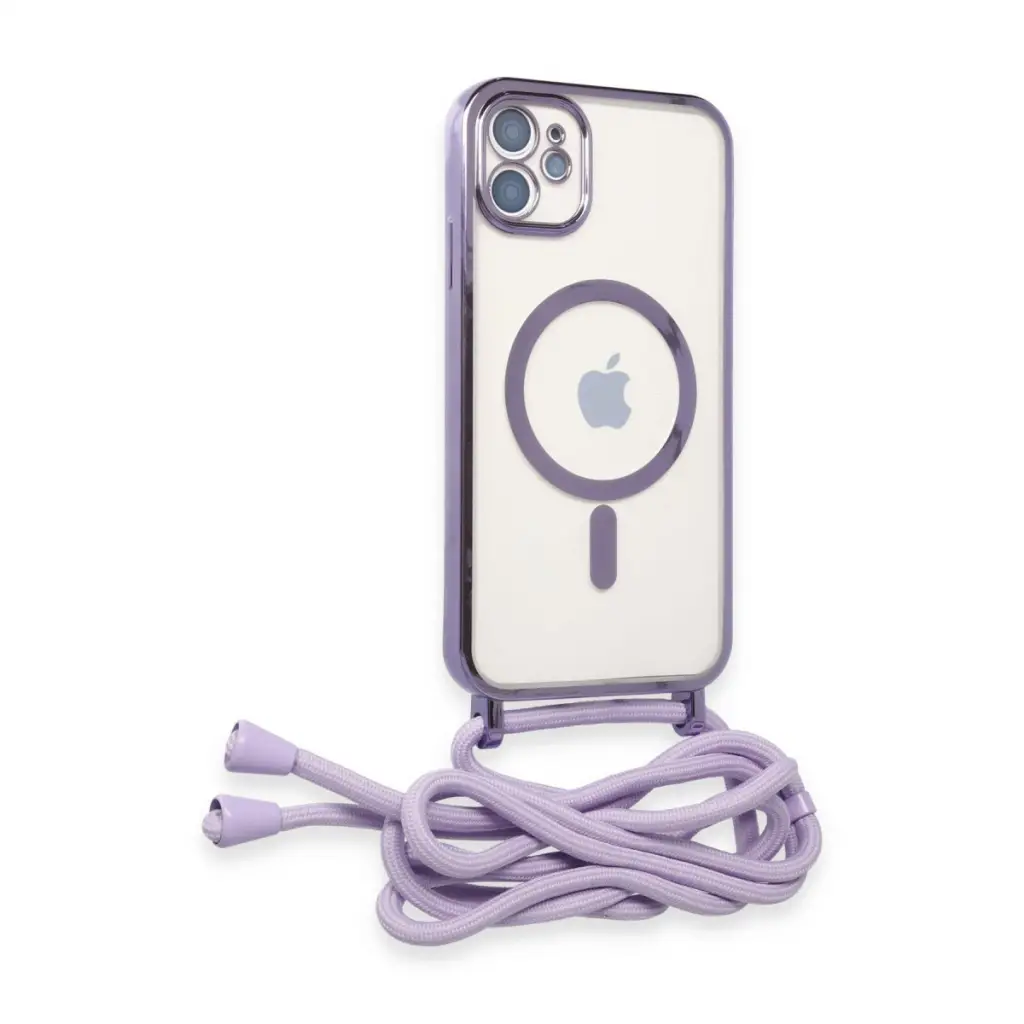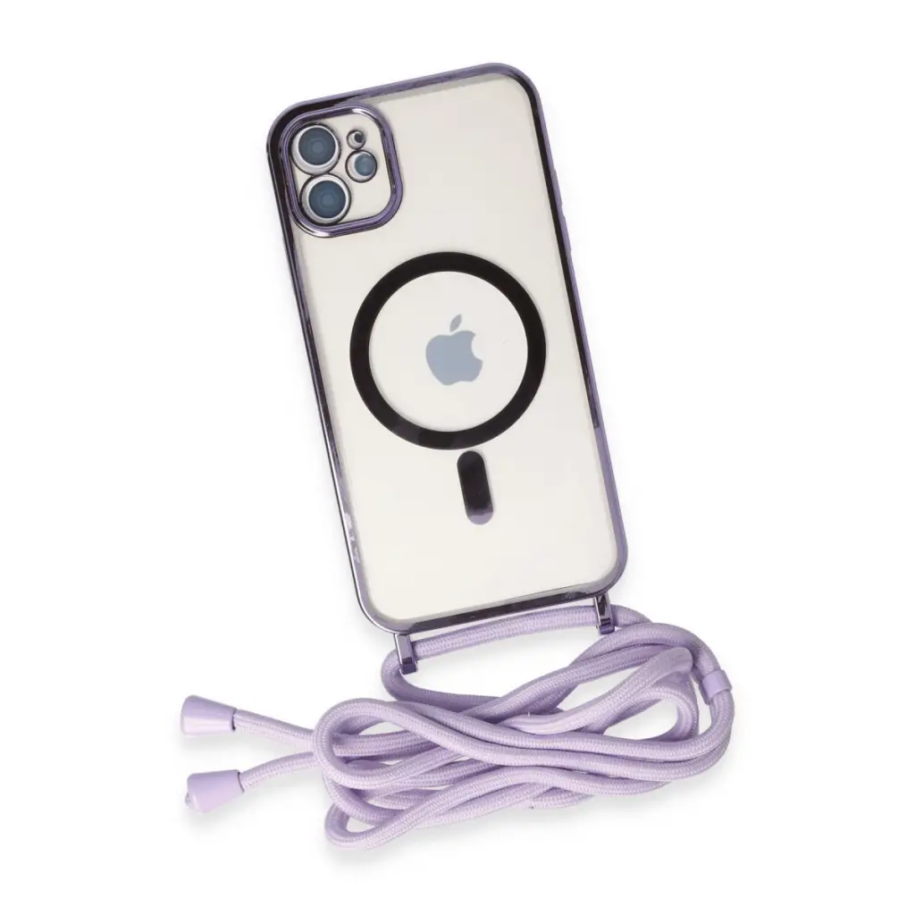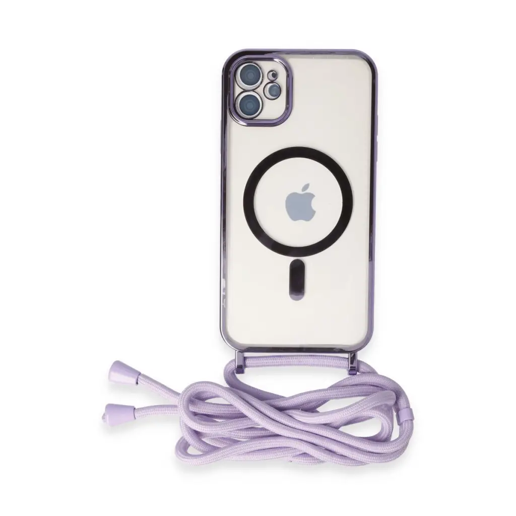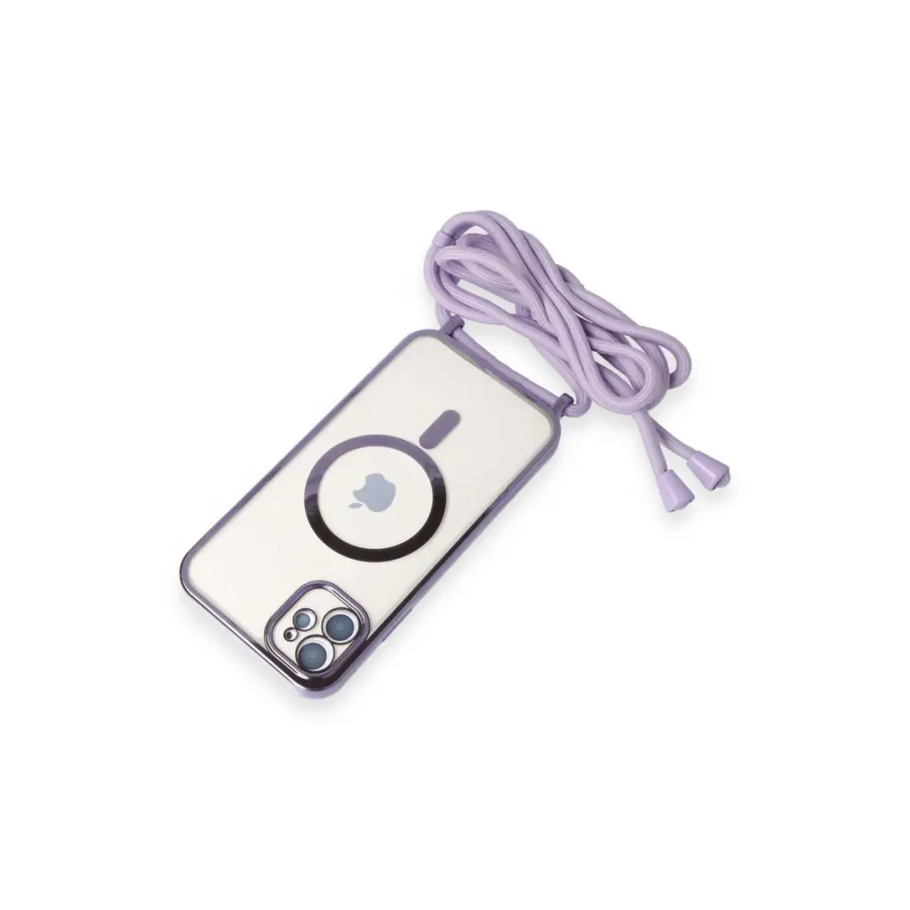 Apple İphone 11 Kılıf Divo Lazer Askılı Magsafe Kapak - Lila