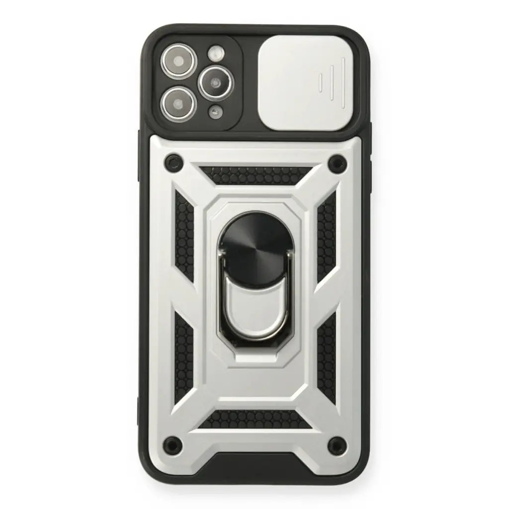 Apple İphone 11 Pro Kılıf Pars Lens Yüzüklü Silikon - Gümüş