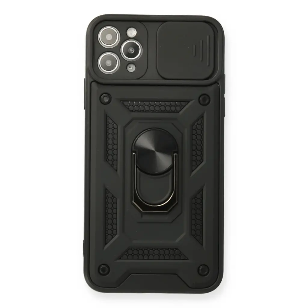 Apple İphone 11 Pro Max Kılıf Pars Lens Yüzüklü Silikon - Siyah