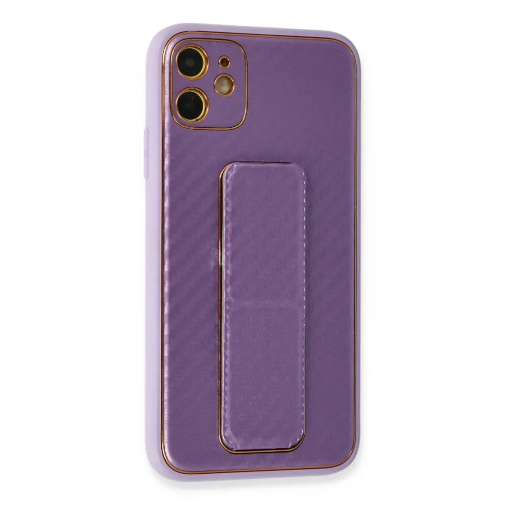 Apple İphone 12 Kılıf Coco Karbon Standlı Kapak - Mor