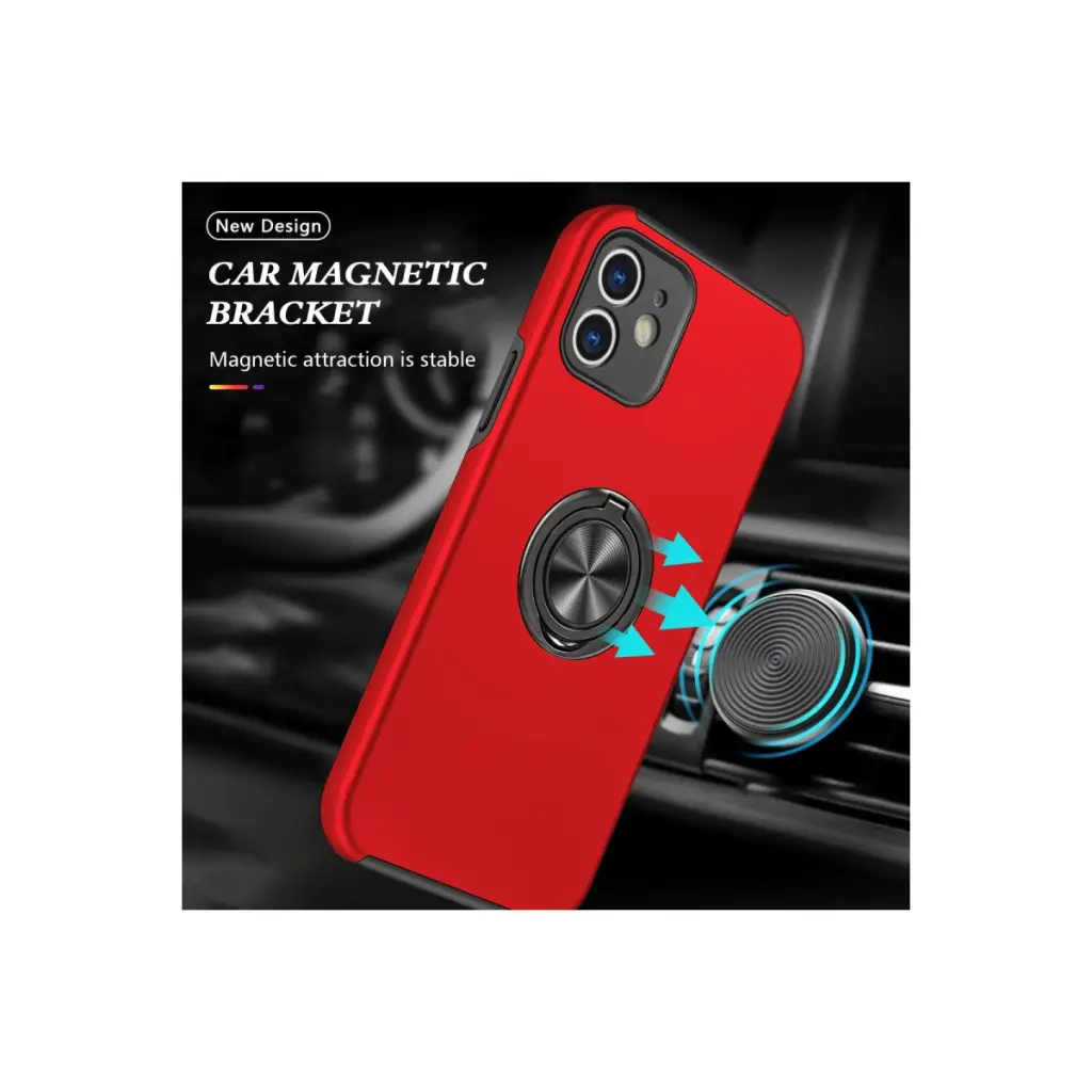 Apple İphone 12 Kılıf Elit Yüzüklü Kapak - Kırmızı