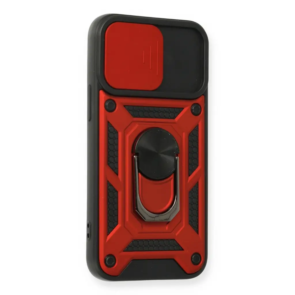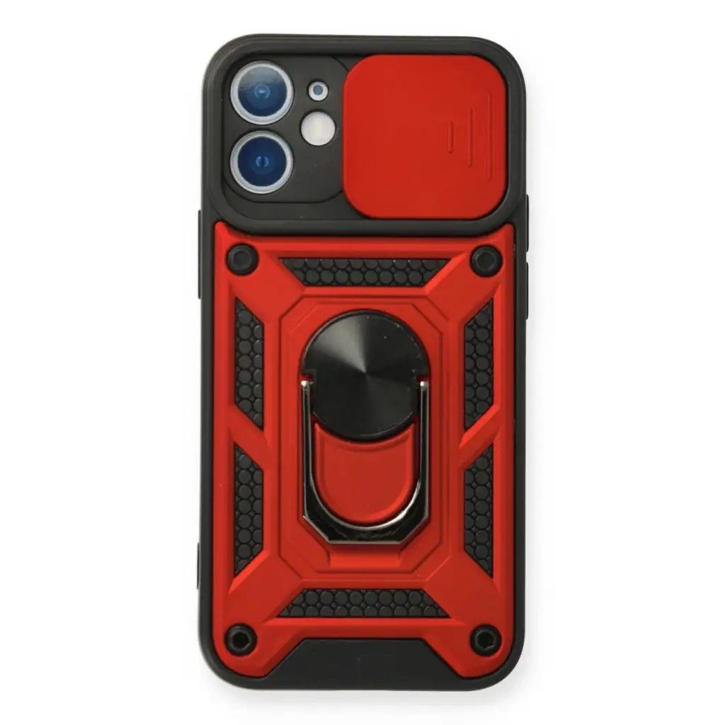 Apple İphone 12 Mini Kılıf Pars Lens Yüzüklü Silikon - Kırmızı