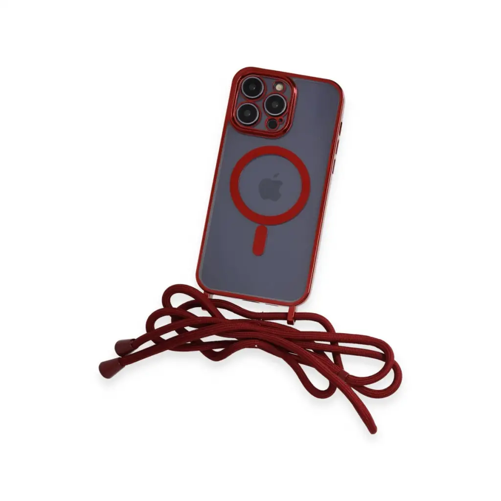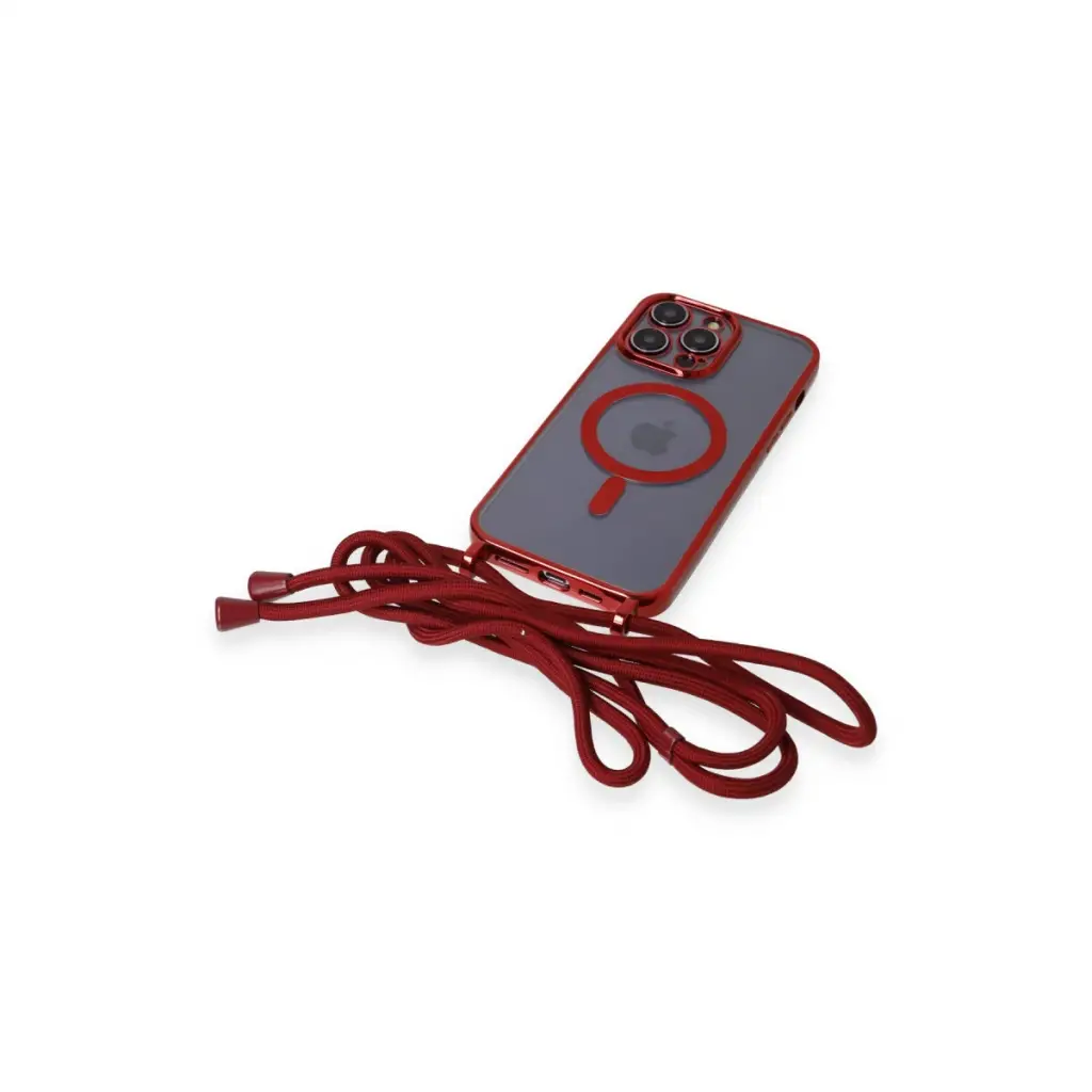 Apple İphone 12 Pro Kılıf Divo Lazer Askılı Magsafe Kapak - Kırmızı