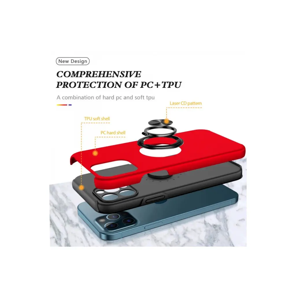 Apple İphone 12 Pro Max Kılıf Elit Yüzüklü Kapak - Kırmızı