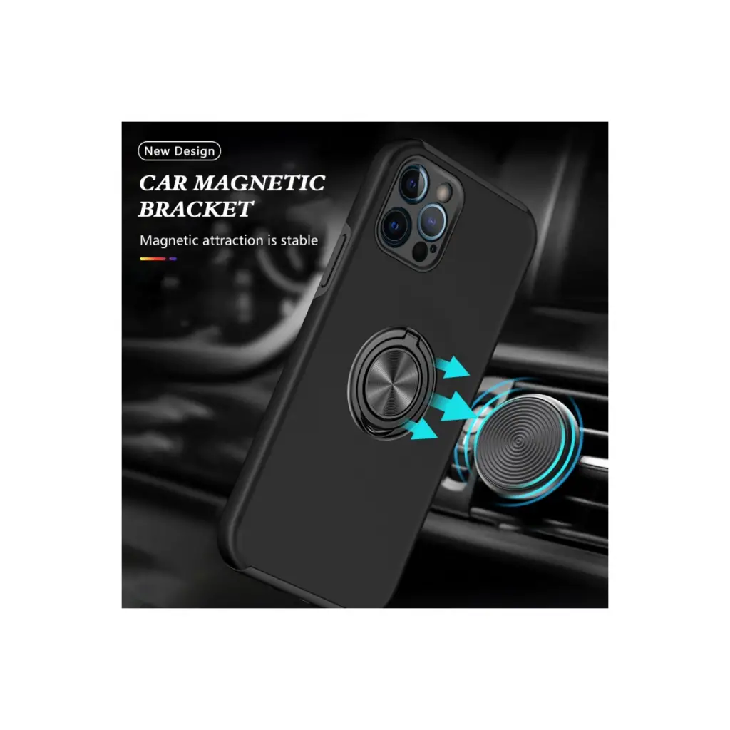 Apple İphone 12 Pro Max Kılıf Elit Yüzüklü Kapak - Siyah