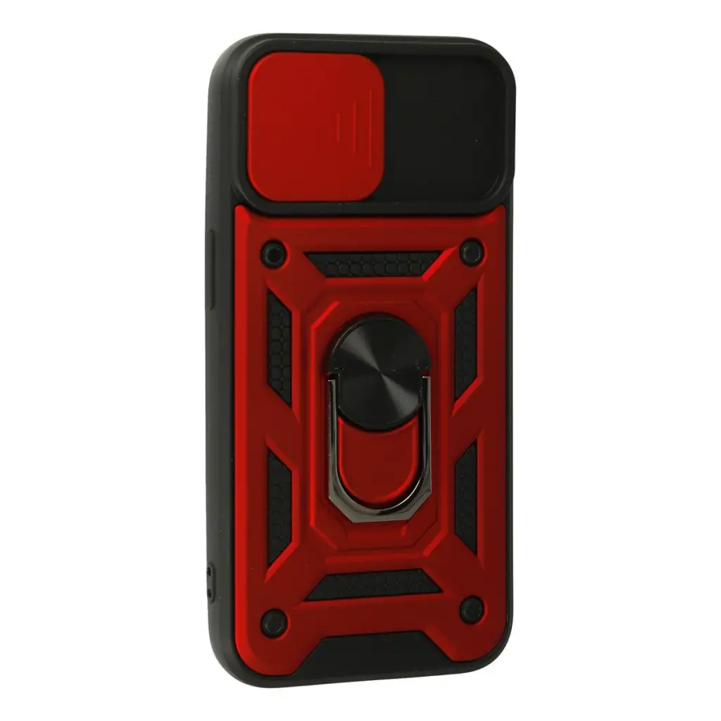 Apple İphone 13 Kılıf Pars Lens Yüzüklü Silikon - Kırmızı