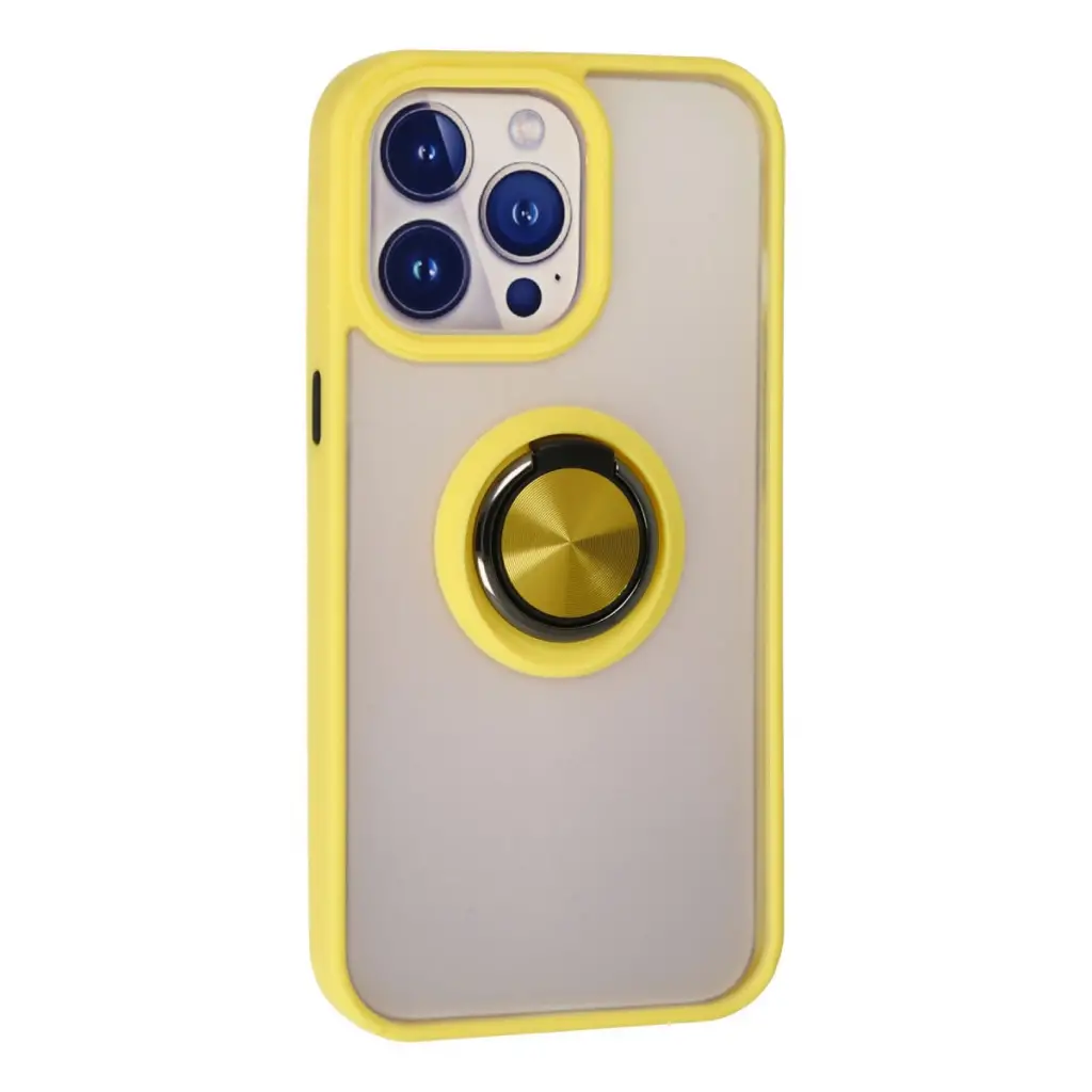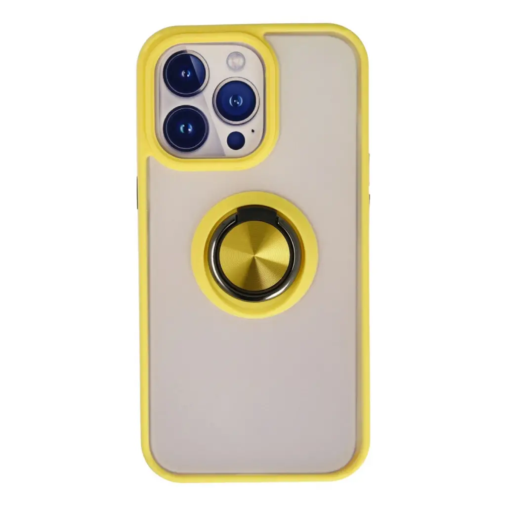 Apple İphone 13 Pro Kılıf Montreal Yüzüklü Silikon Kapak - Sarı