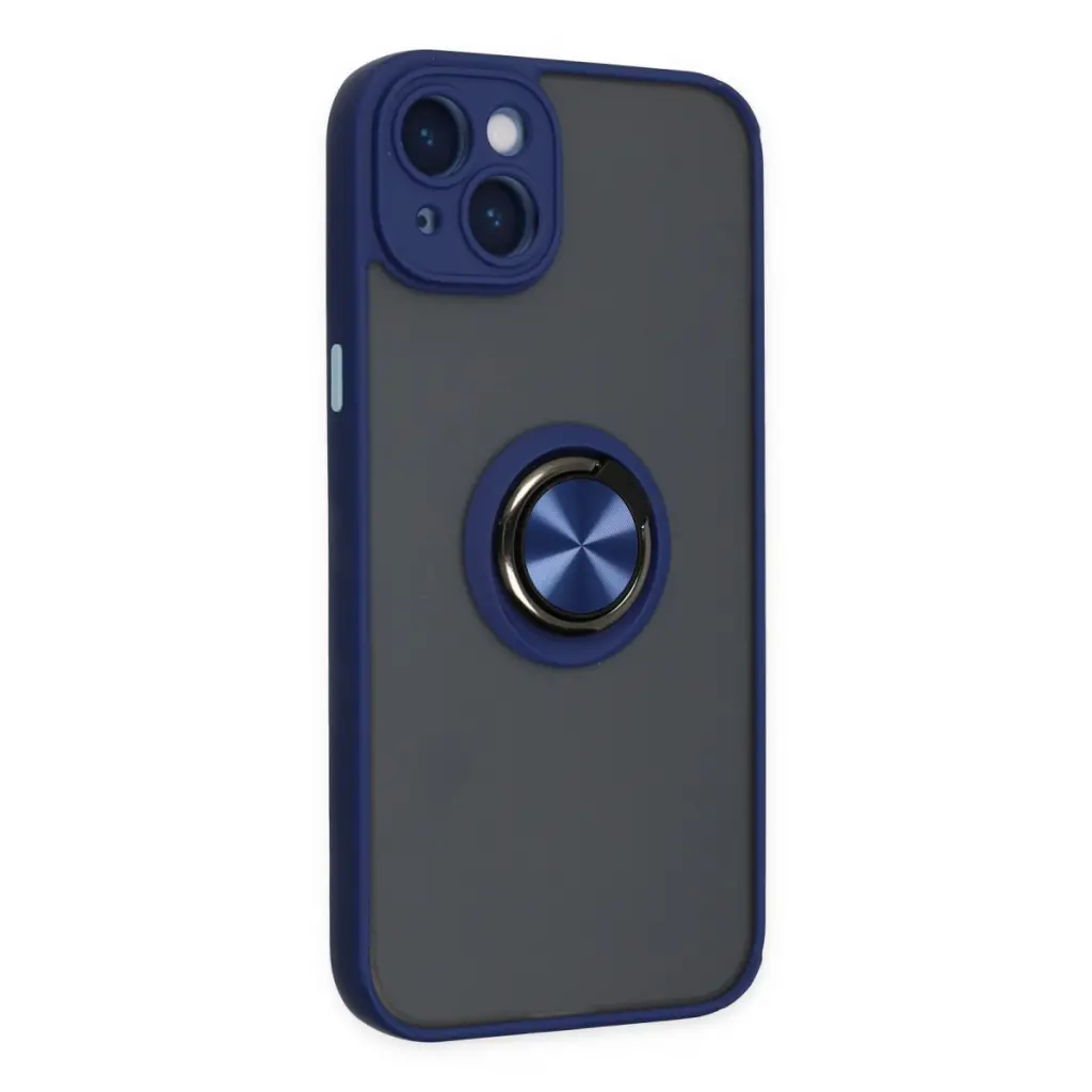 Apple İphone 14 Kılıf Montreal Yüzüklü Silikon Kapak - Lacivert