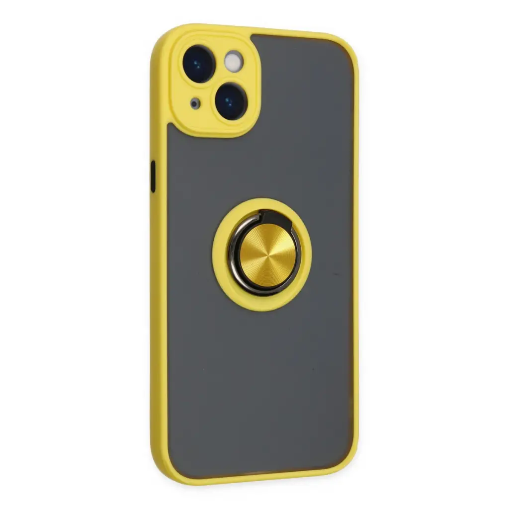 Apple İphone 14 Kılıf Montreal Yüzüklü Silikon Kapak - Sarı
