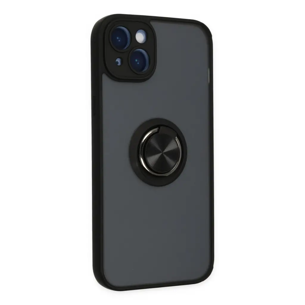 Apple İphone 14 Kılıf Montreal Yüzüklü Silikon Kapak - Siyah