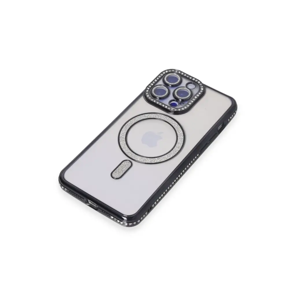 Apple İphone 14 Pro Max Kılıf Joke Simli Magneticsafe Kılıf - Siyah