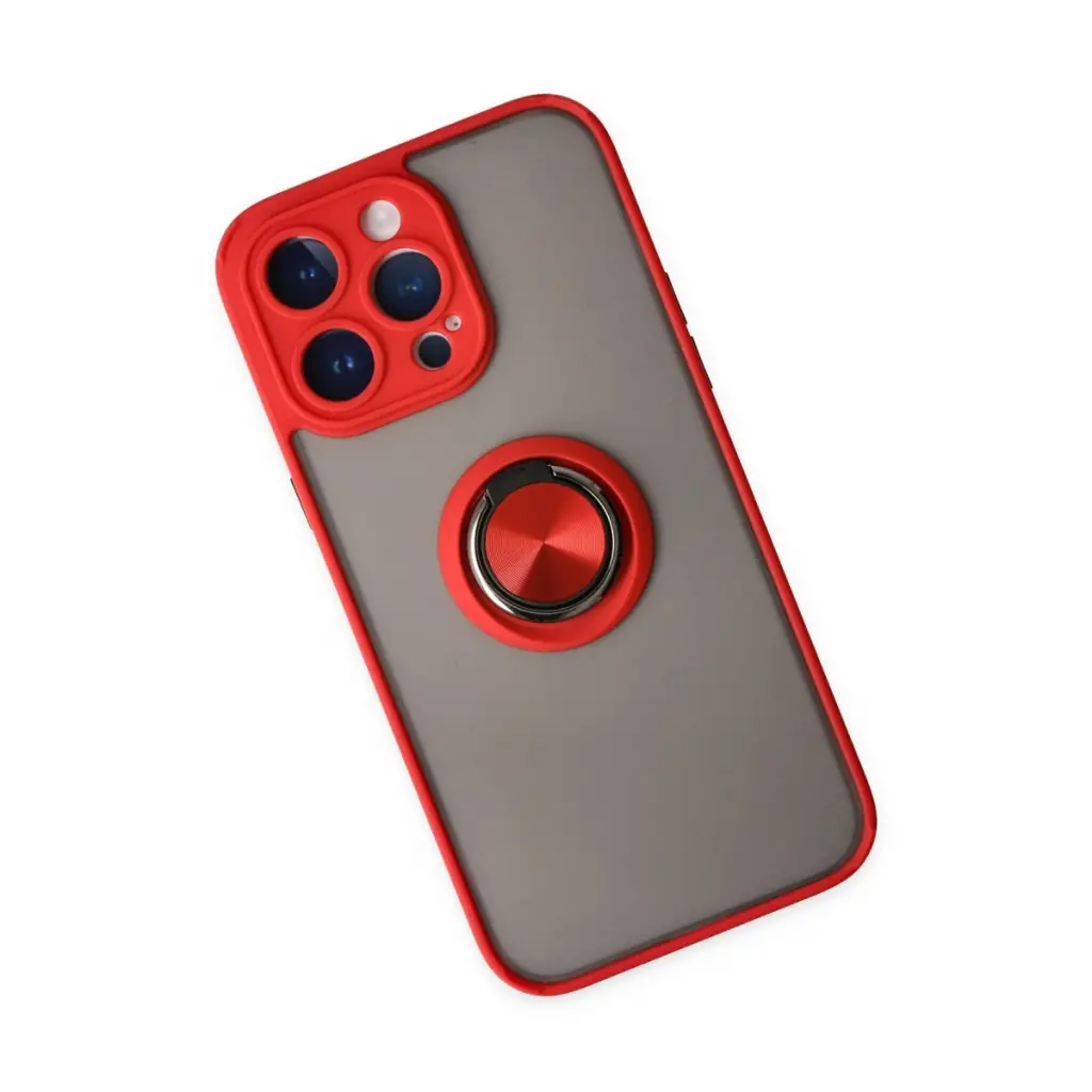 Apple İphone 14 Pro Max Kılıf Montreal Yüzüklü Silikon Kapak - Kırmızı