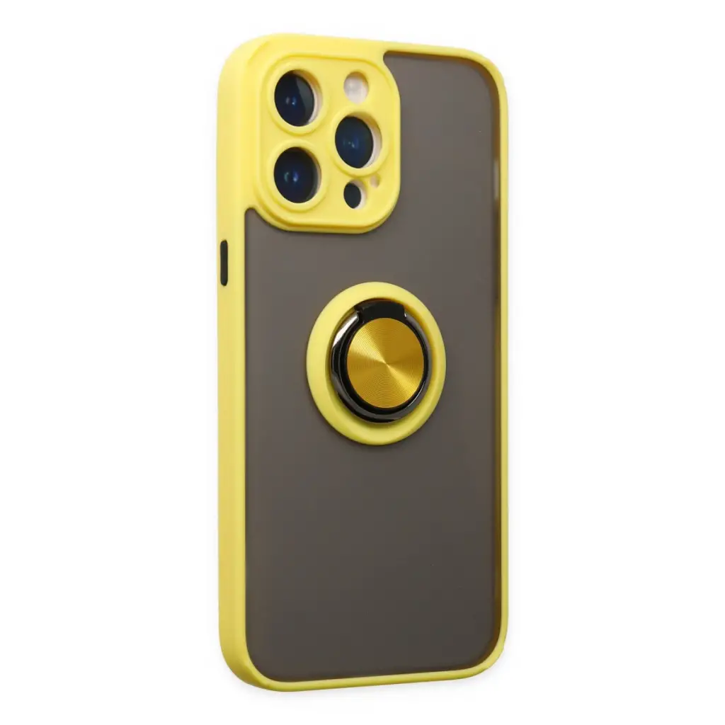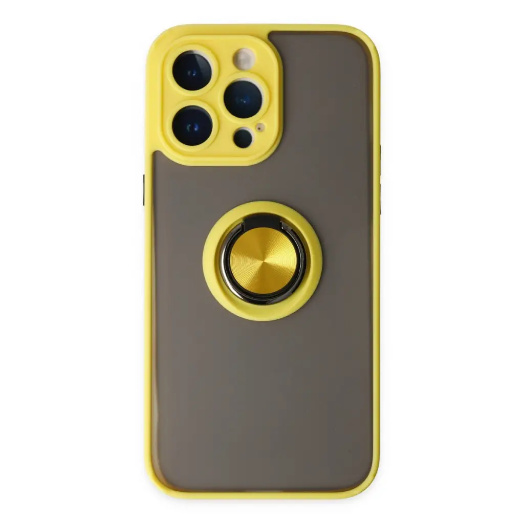 Apple İphone 14 Pro Max Kılıf Montreal Yüzüklü Silikon Kapak - Sarı