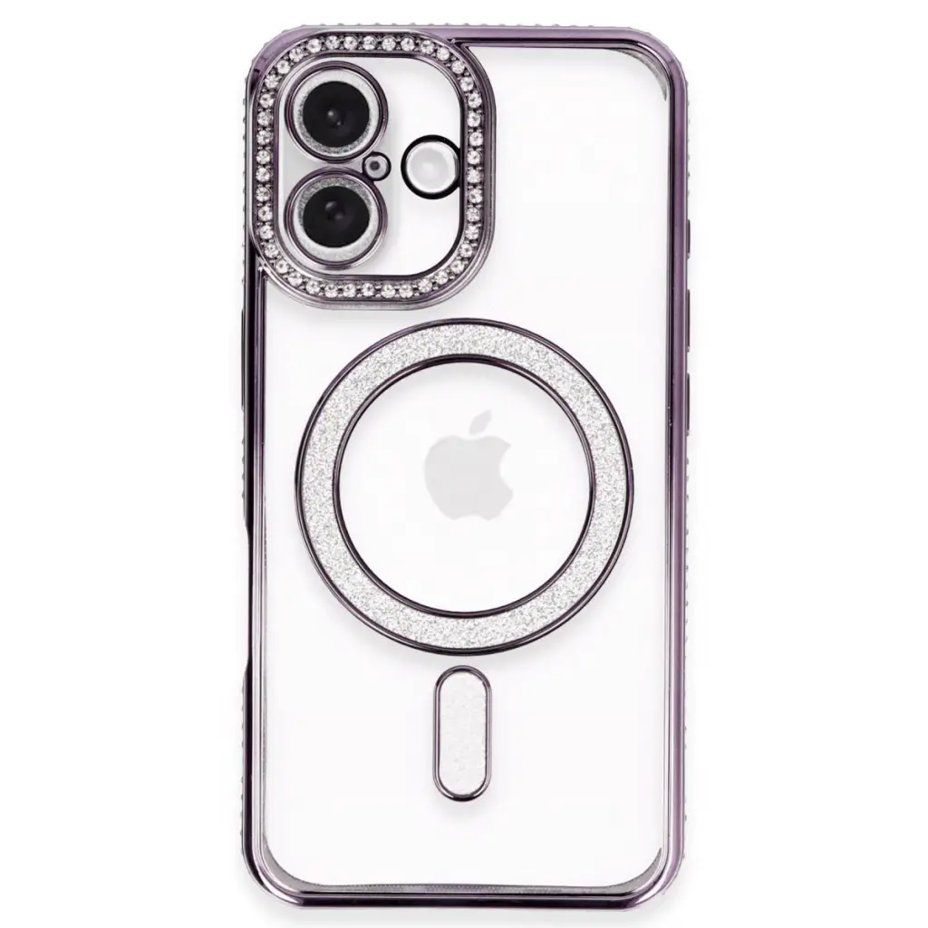 Apple İphone 16 Plus Kılıf Joke Simli Magneticsafe Kılıf - Derin Mor