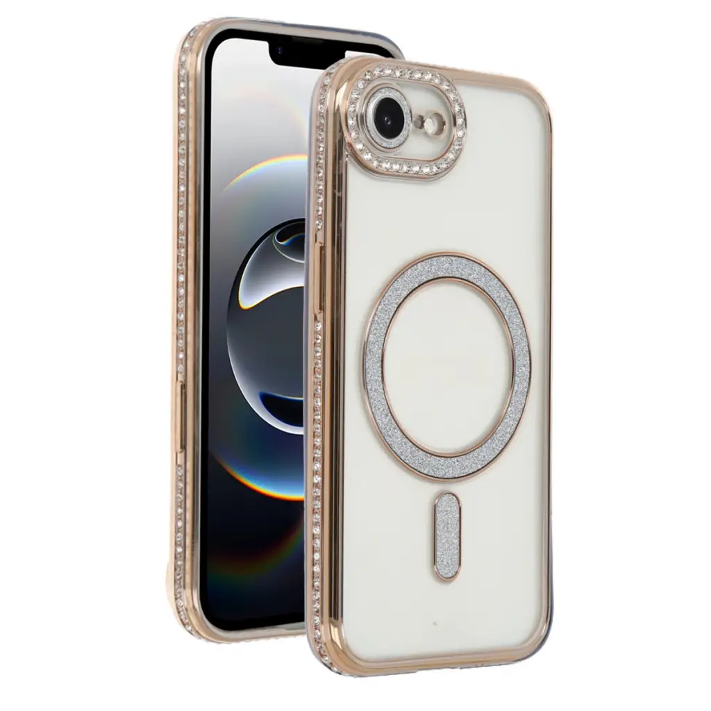 Apple İphone 16e Joke Simli Magneticsafe Kılıf - Gold
