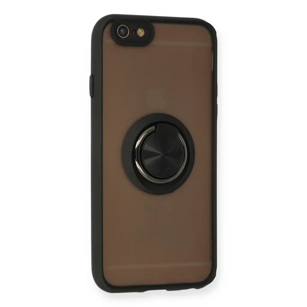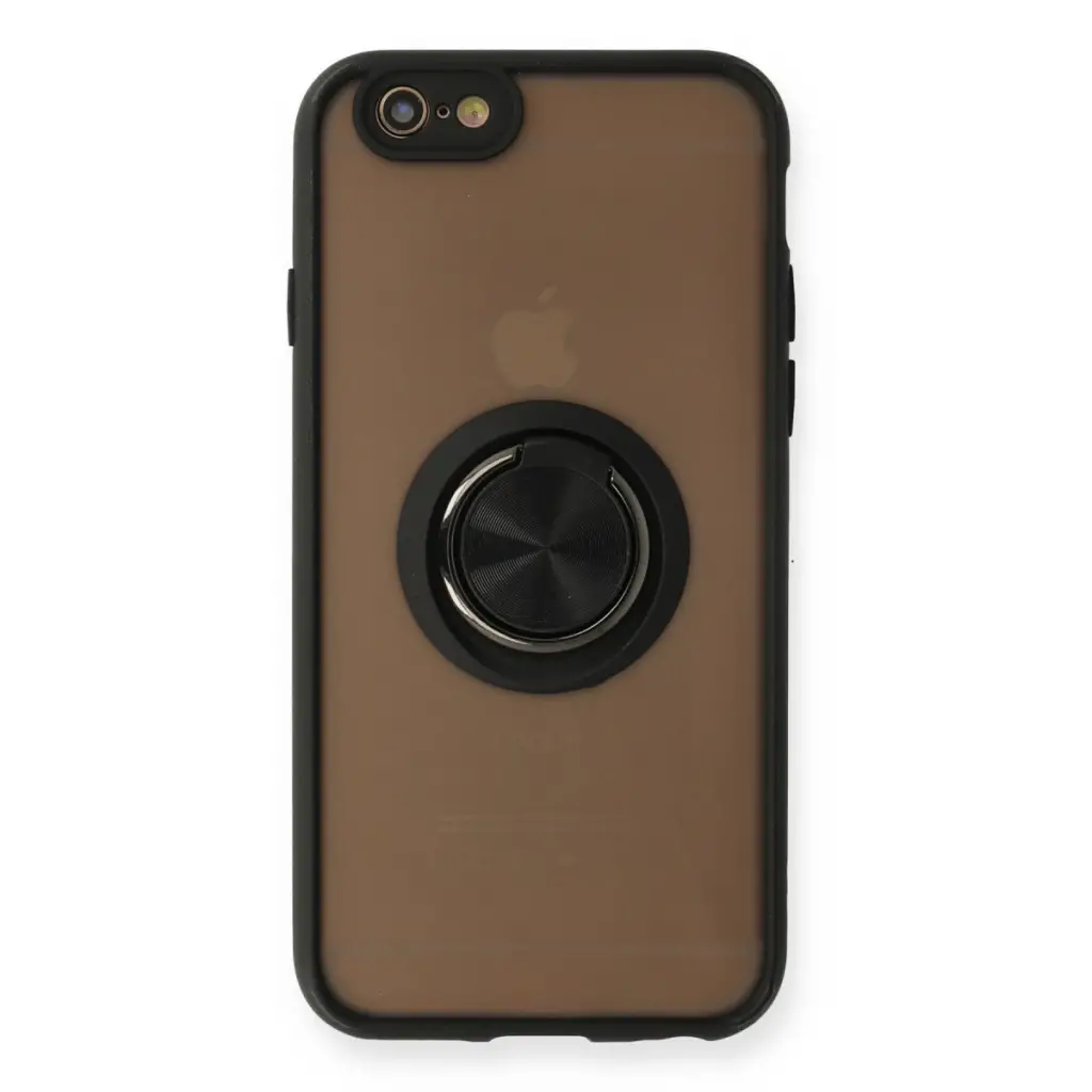 Apple İphone 6 Kılıf Montreal Yüzüklü Silikon Kapak - Siyah