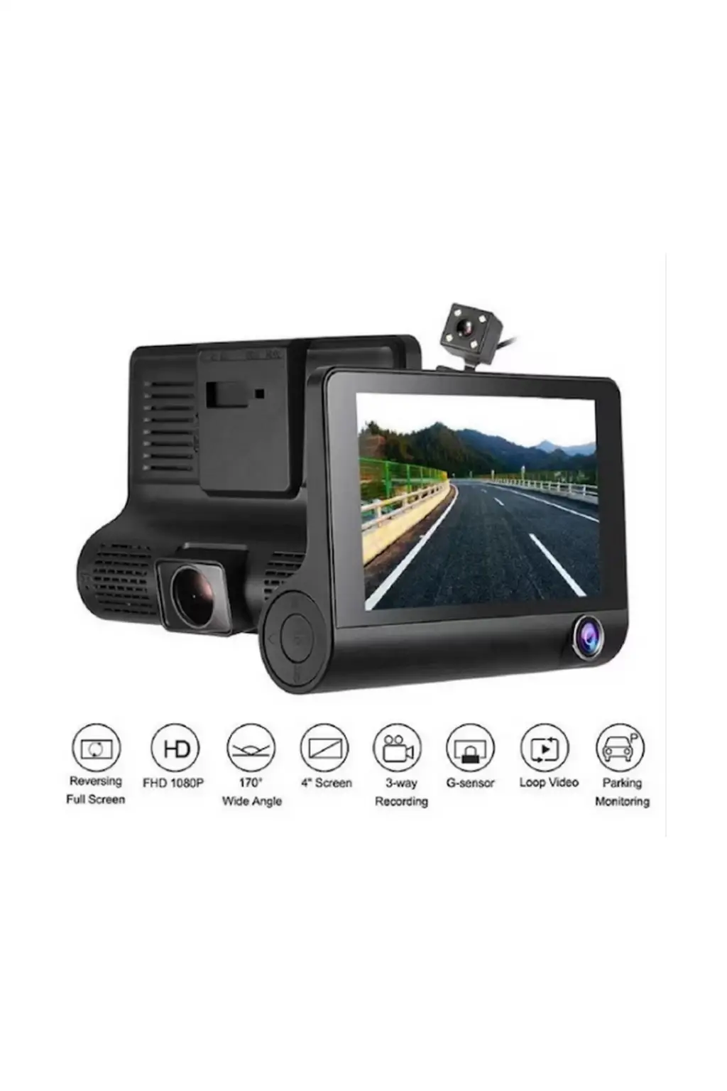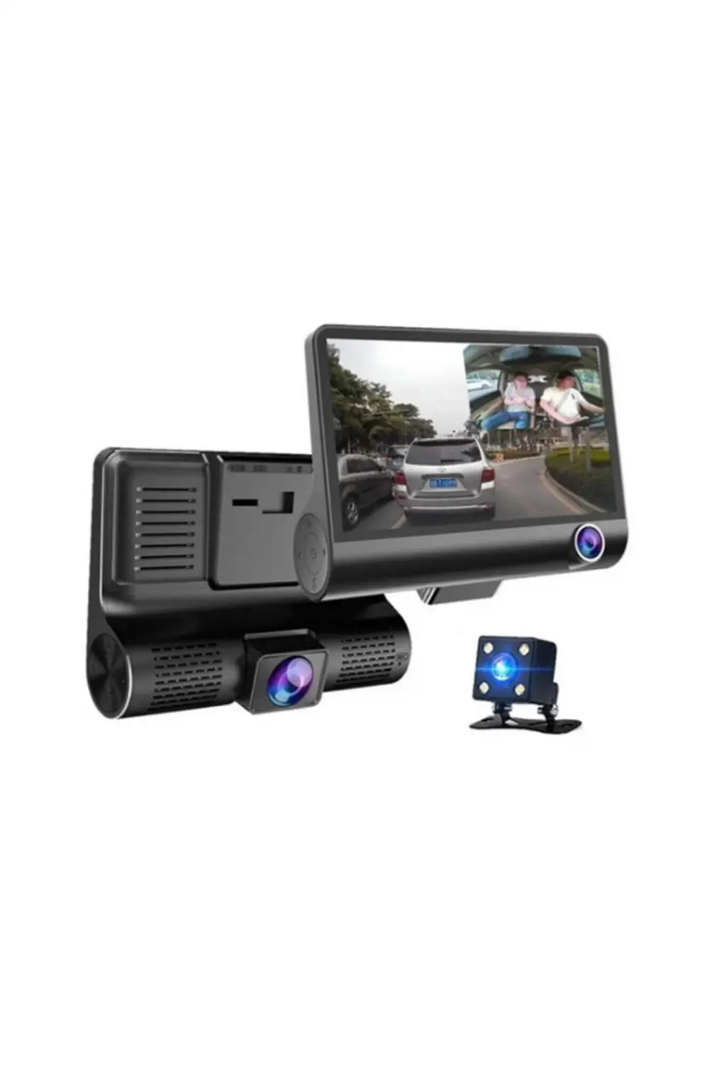 1 araç kamerası / 1 araç şarjı / cam vantus / 1 kullanım kılavuzu / 3 kameralı araç içi kamera çift yönlü oto dvr kayıt / Cihaz üzerinde kamera hem öne hem arkaya dönebilir.