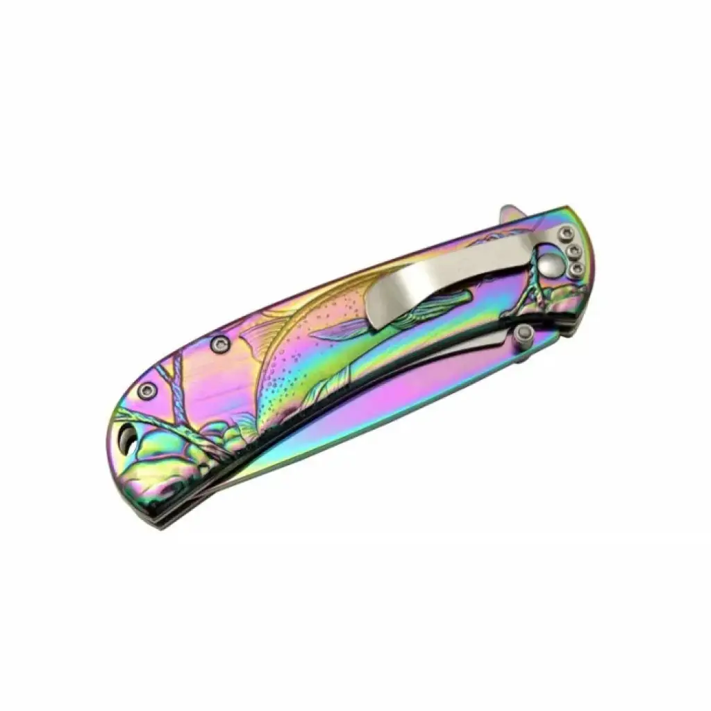 • Koleksiyon: Şık ve dayanıklı tasarımı, çakıyı koleksiyoncular için değerli bir parça yapar. Gökkuşağı renkli kaplama, çakının estetik görünümünü artırır ve koleksiyonlara şık bir katkı sağlar.