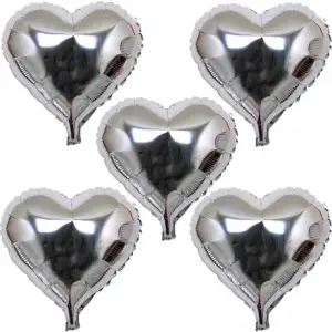 Kalp Şekilli Gümüş Renk Folyo Balon 45 Cm 5 Adet
