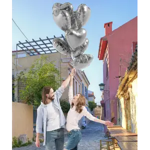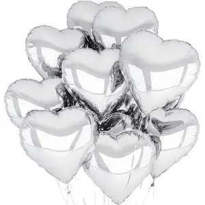 Metalize Parlak Gümüş Kalp Şekilli Uçan Balon Folyo 18 İnç 45 Cm 10 Adet