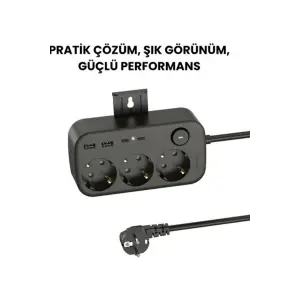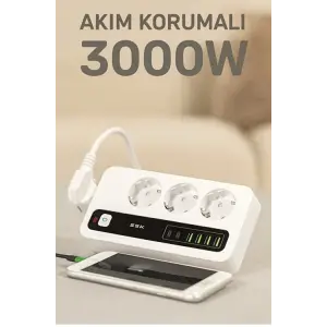 P10 3x Priz 3000w Akım Korumalı 4x Usb 2x Type-c Girişli Çoklu Priz