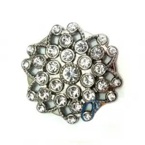 Taşlı Yuvarlak Broş, Sandık Süsü 4,5 Cm - Nikel, 1 Adet