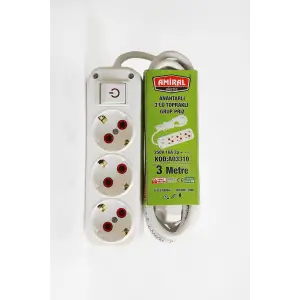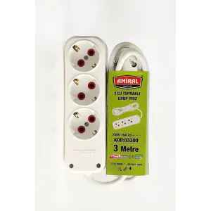 Amiral 3' Lü Topraklı 3 Metre Kablolu Grup Priz