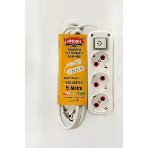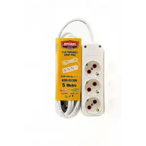 Amiral 3' Lü Topraklı 5 Metre Kablolu Grup Priz