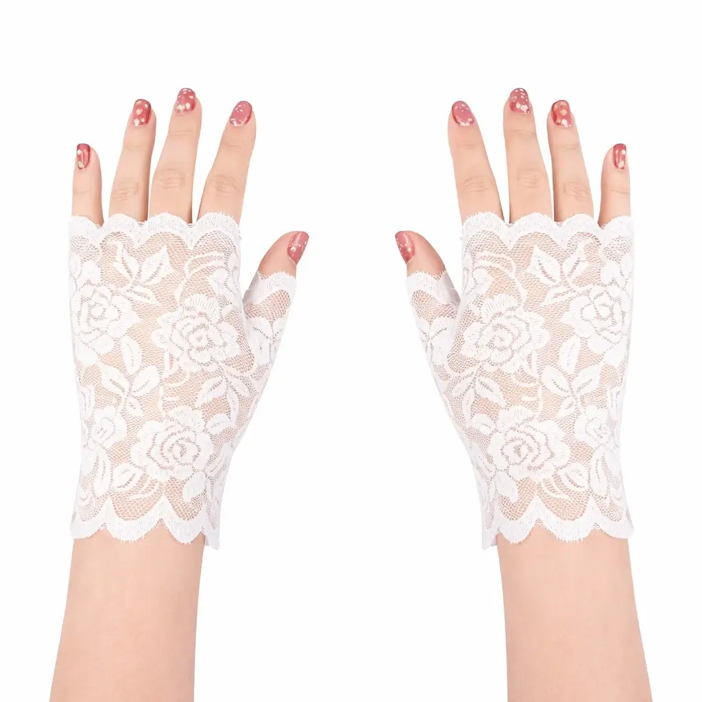 Beyaz Dantel Parmaksız Kısa Eldiven