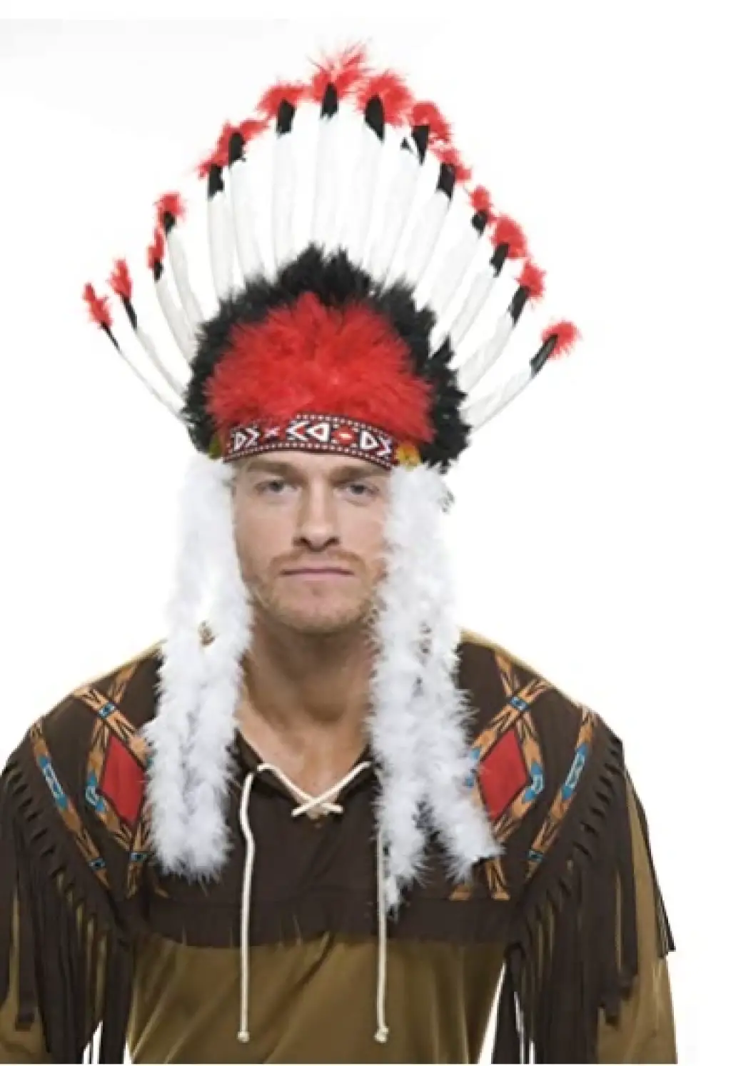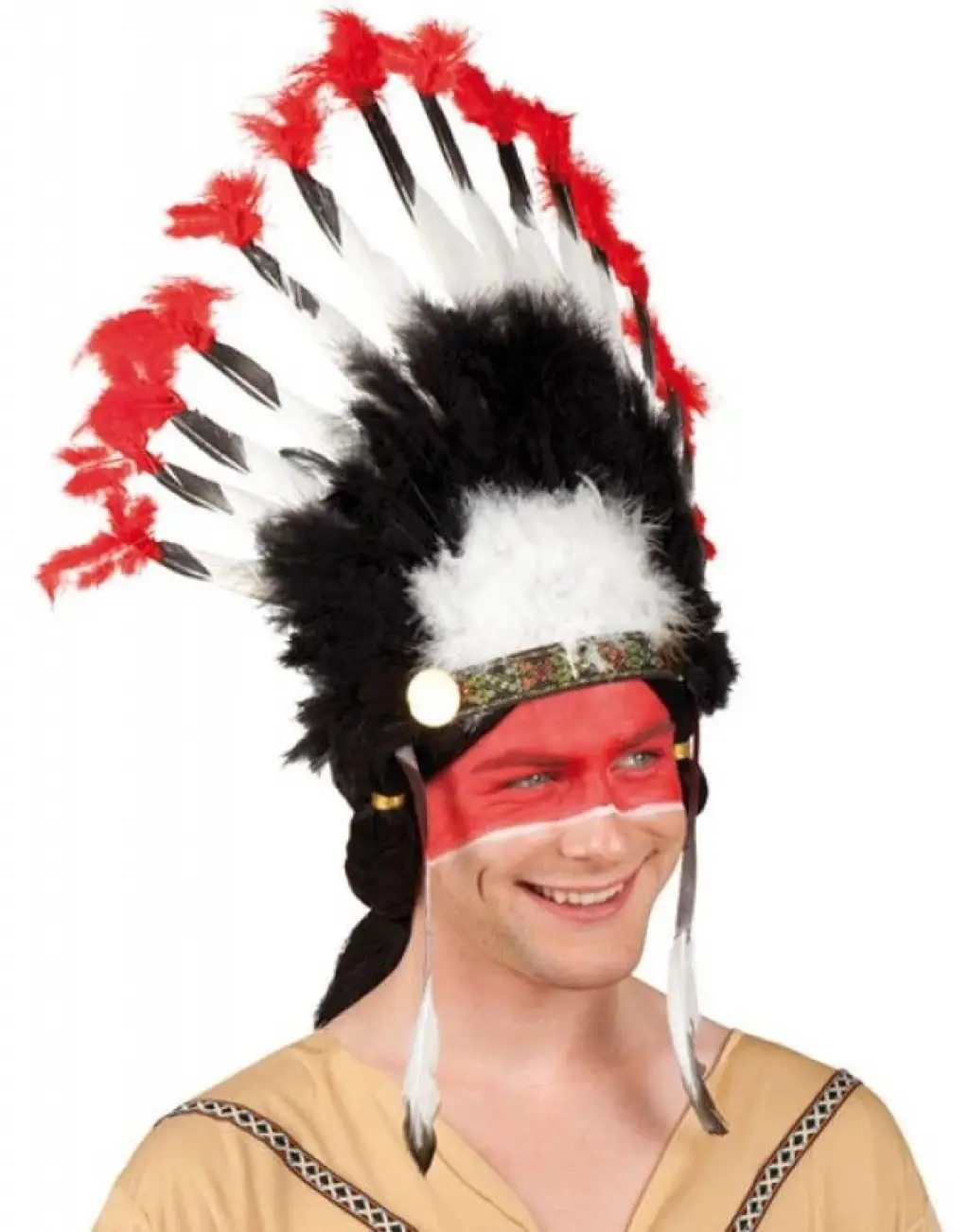 Beyaz Tüylü Siyah Kırmızı Büyük Hintli Kızılderili Başlığı