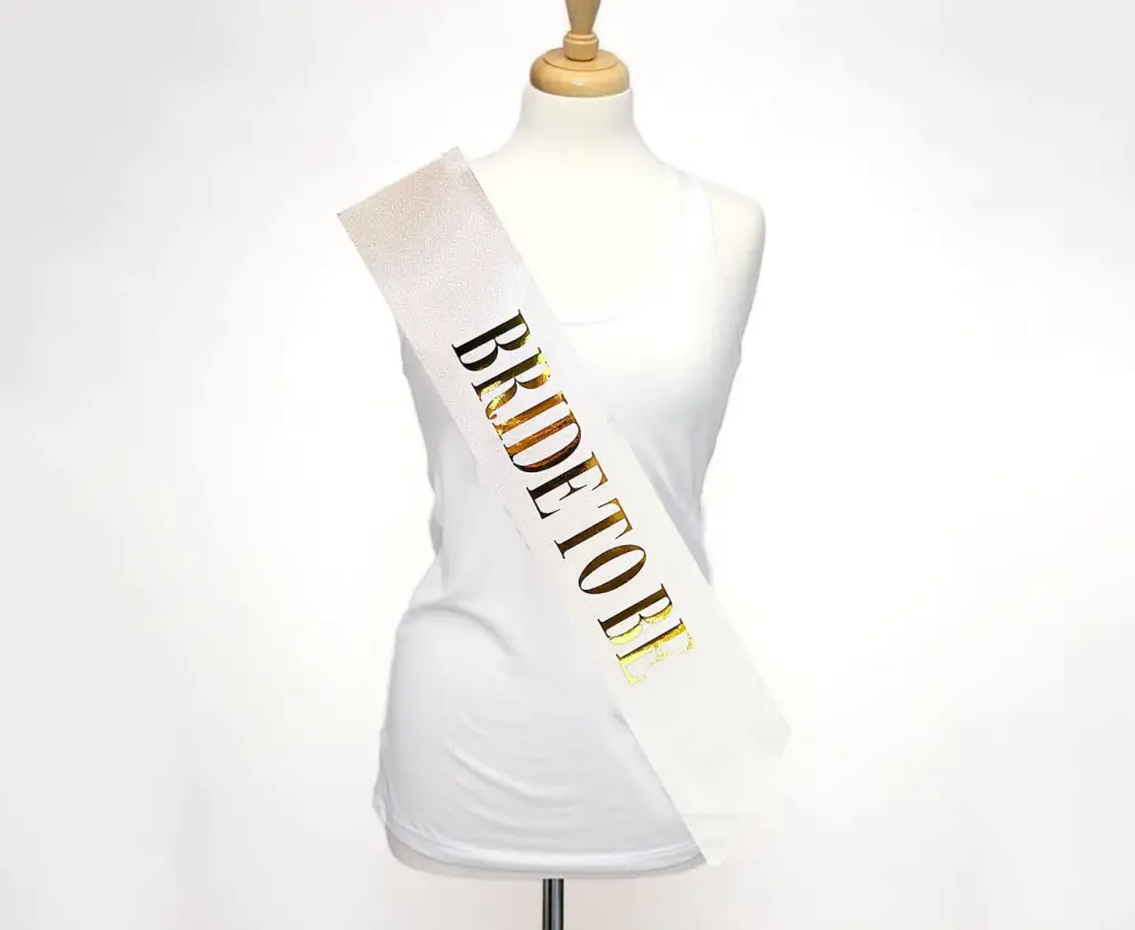 Beyaz Üzeri Altın Büyük Bride To Be Yazılı Simli Işıltılı Kuşak Kemer 10x80 cm