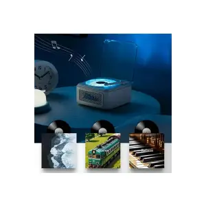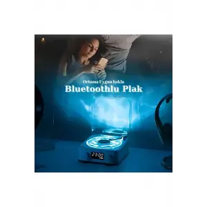 Waves Nostalji Plak Görünümlü Bluetooth Hoparlör 3d Ses Dalgası Retro Müzik Plak Mavi
