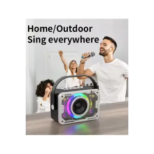 Karaoke Kablosuz Hoparlör Mikrofonlu Rgb Işıklı Bluetooth Speaker Tf Kart/usb Siyah
