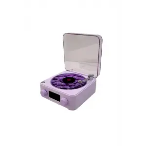 Waves Nostalji Plak Görünümlü Bluetooth Hoparlör 3d Ses Dalgası Retro Müzik Plak Mor