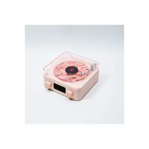 Waves Nostalji Plak Görünümlü Bluetooth Hoparlör 3d Ses Dalgası Retro Müzik Plak Pembe