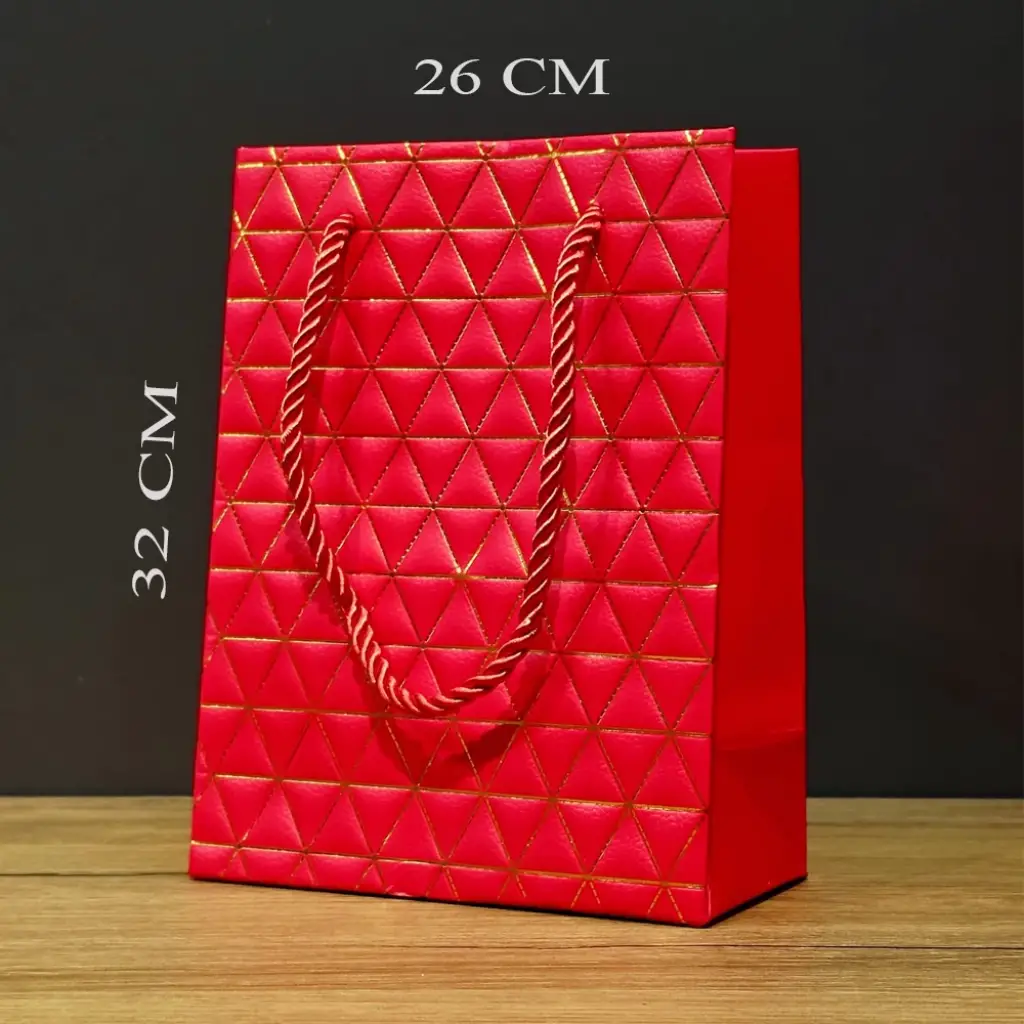 Desenli Büyük Hediye Çantası, Kırmızı Hediye Çantası, Kırmızı Karton Çanta ÖLÇÜSÜ: 26 cm x 32 cm