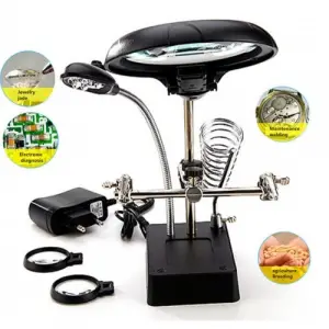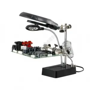 Ayarlanabilir Başlıklı Elektronikçi Yardım Lehim Standı Ile Ledli Büyüteç