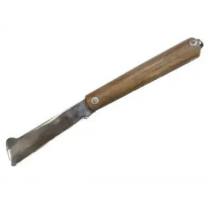 Bursa Çelik Eğri Bağ / Kablo / Aşı Çakısı, Ahşap Saplı - 22 Cm