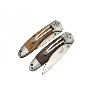 4-11 Kahverengi Kamp Çakı 21cm- Yarı Otomatik, Kemerlikli, Ahşap Sap