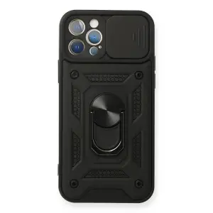 Apple İphone 12 Pro Kılıf Pars Lens Yüzüklü Silikon - Siyah